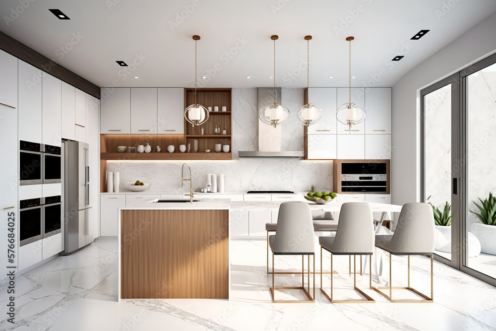 Design a Modern, Spacious Kitchen with a Light Color Scheme and Sleek