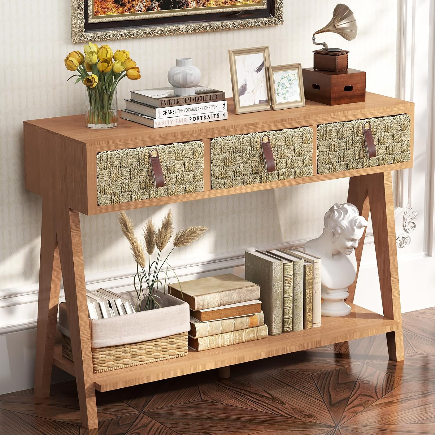 Mid Century Modern Console Table with Storage for Entryway, Multi