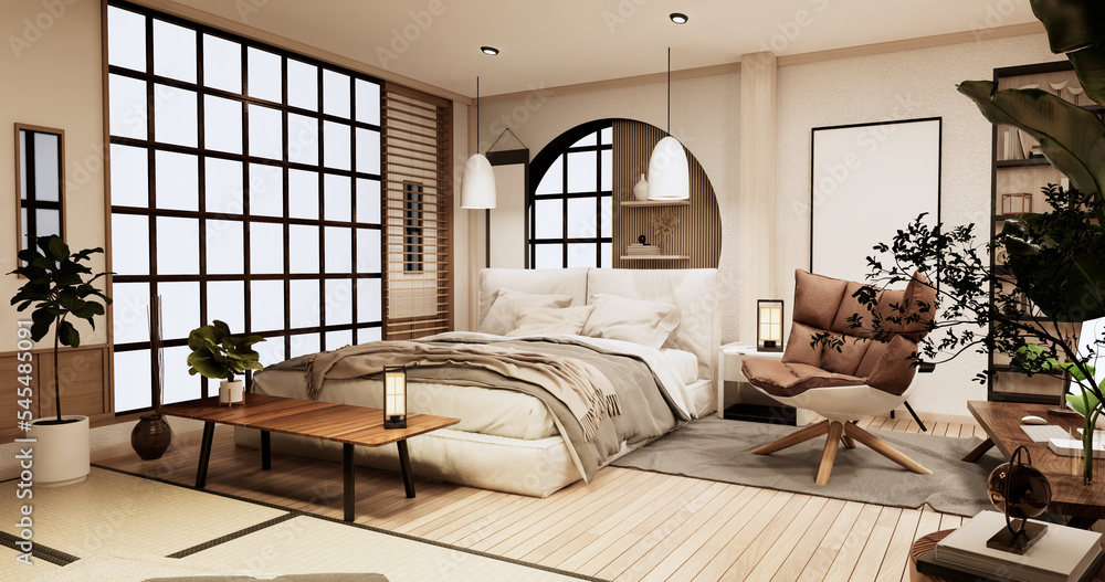 Minimalist wabi sabi interior mock up design, room muji sytle. 3D